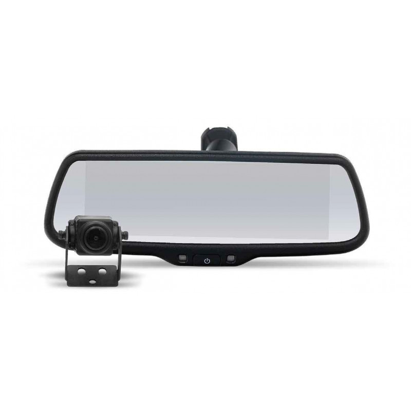 THIS UNIVERSAL REAR VIEW MIRROR MONITOR WITH A 7.3” LCD DISPLAY FEATURES AUTO-DIMMING VIA AMBIENT LIGHT SENSOR AND INDEPENDENTLY ADJUSTABLE BRIGHTNESS FOR FULL VIEW AND REVERSE MODES. COMPATIBLE WITH THE PS-6CBP REAR SENSOR SYSTEM*, IT SUPPORTS ON-SCREEN OVERLAY FOR FIVE SELECTABLE VEHICLE TYPES AND ALERTS FOR SENSOR FAULTS. INCLUDES AN IP68-RATED CAMERA WITH AN 80° VIEWING ANGLE AND UNIVERSAL MOUNT.
